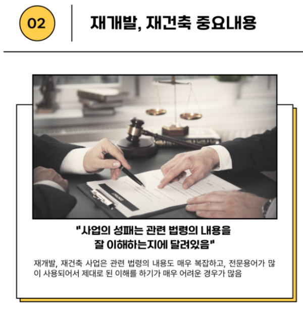 변호사, 판사, 검사 등 법률 전문가들도 재개발, 재건축 분야의 사건을 실제로 수행해보지 않으면 해당 분야를 이해하는데 어려움을 겪는데요.